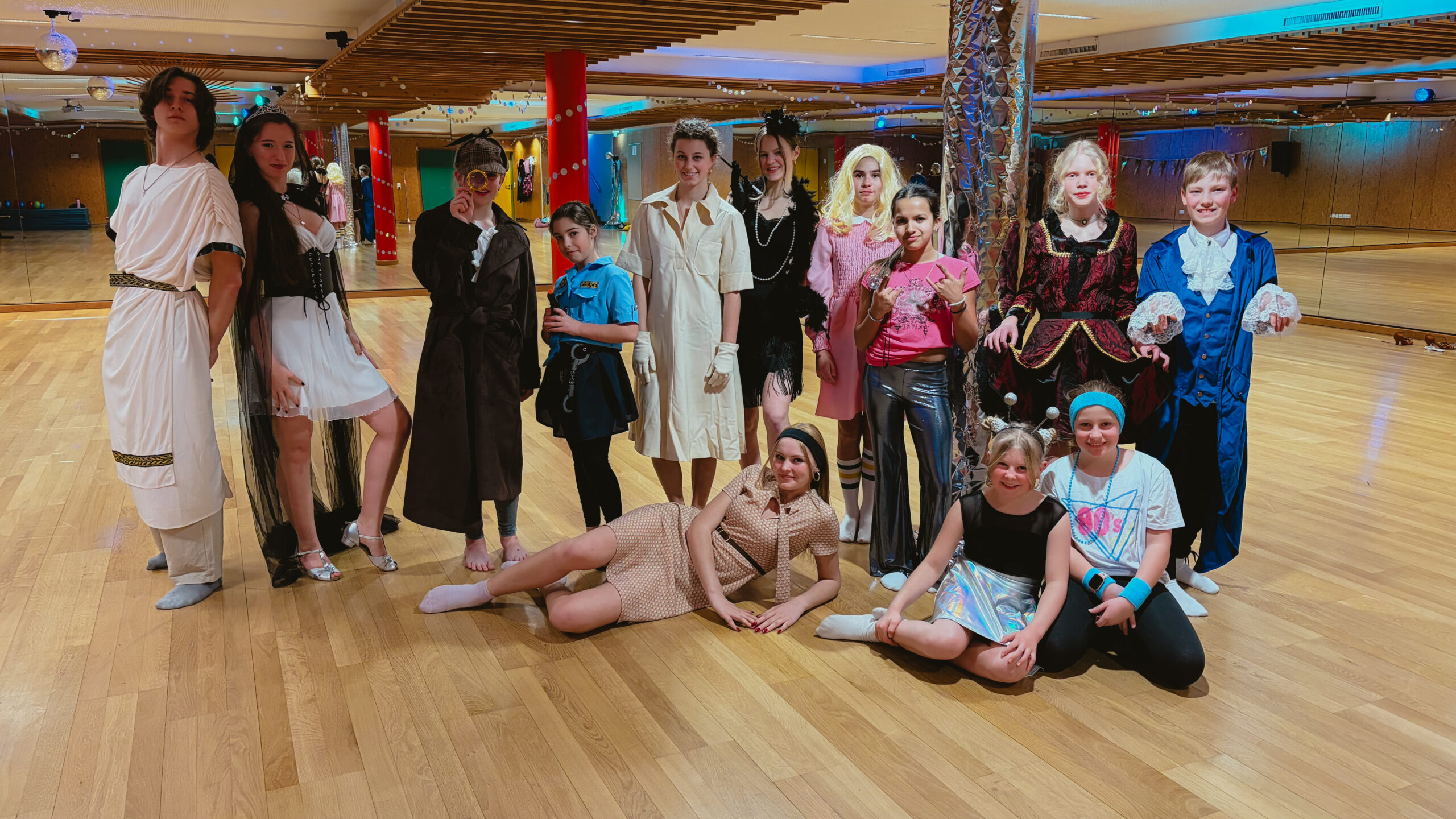 Eine Woche lang wurde im TSC HIB Saalfelden nicht nur getanzt – es wurde gereist. Unter dem Motto TIME MACHINE verwandelten sich unsere Trainings in eine bunte Zeitreise: von historischen Figuren über Disco-Ikonen bis hin zu futuristischen Looks. Unsere Tänzerinnen und Tänzer erschienen verkleidet, mit viel Fantasie und sichtbar großer Freude am gemeinsamen Motto.